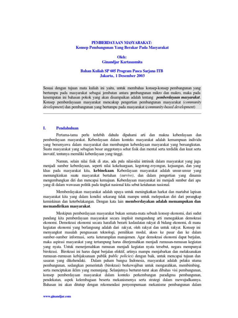 The call narnia. Prinsip penting dari community development comdev adalah adanya pelibatan pemberdayaan masyarakat dalam program yang dilaksanakan. Community based correction adalah jenis program pembinaan bagi narapidana sewaktu mereka menjalani sisa pidananyamereka diberi kesempatan untuk kembali ke tengah tengah masyarakat dengan pengawasan atau supervisi tertentu. Pendekatan pembangunan berbasis masyarakat community based development adalah metode pendekatan yang melibatkan masayarakatkomunitas didalam pembangunandidalam pembangunan ini melibatkan berbagai unsur unsur yang lebih luas diantaranya adalah sosial budaya ekonomi hingga peraturankepranataan dan lingkungan.