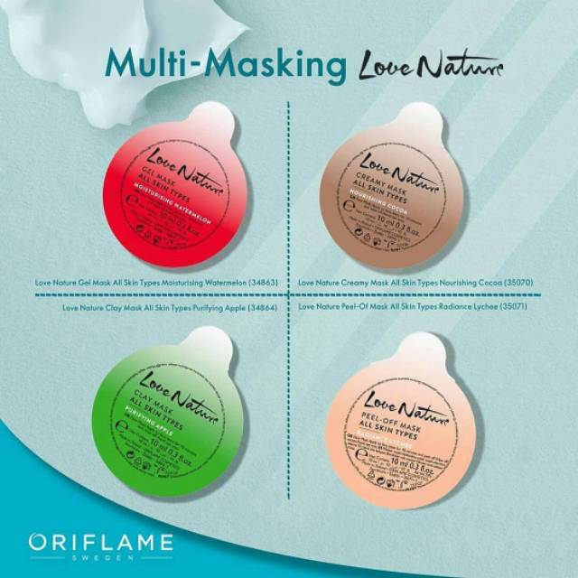 Oriflame love nature gel mask adalah masker gel transparan yang diformulasikan dengan ekstrak aloe vera yang akan melembabkan kulit menjadikan kulit wajah lembut dan bercahaya. Love nature creamy mask oat.